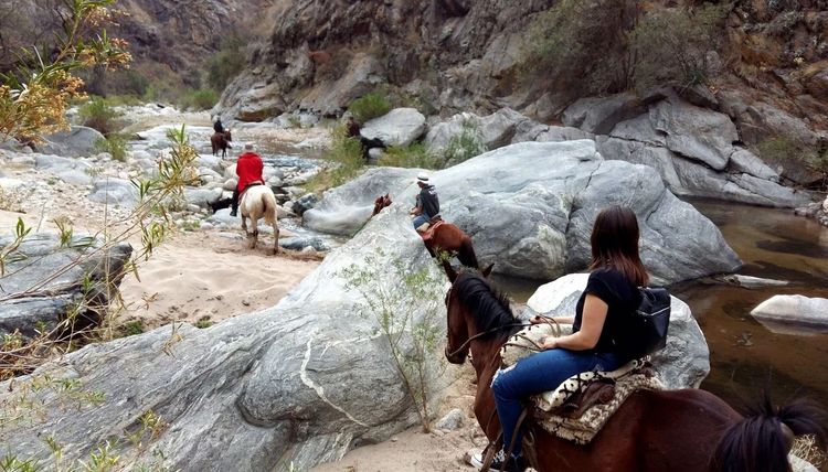 La fisonomía del paisaje permite la práctica de cabalgatas, donde el "Gaucho" Pautassi, con sus 30 años de experiencia, los conduce a caballo por quebradas y ríos, rincones y callejones con un micro-clima especialmente atractivo.